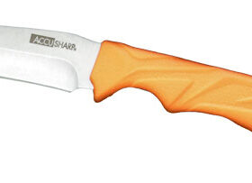 -Stainless steel knife is made w/ a wide, non-slip rubber grip for easy handling