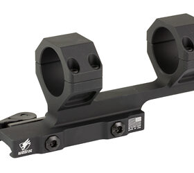 The AD-DELTA-C-H mount is made for putting high power glass onto a flattop style AR-15. The AD-DELTA-C-H is a cantilever scope mount with 2″ of eye relief built in and high 1.93″ height ideal for use with NV or gas masks. Ring spacing is 4.4″. It is precision machined from 6061 T6 aluminum and finished in hard coat T3 Mil-Spec anodize. This mount features horizontal split rings and the Patented QD Auto Lock Lever system to accommodate both in spec and out of spec rail systems.