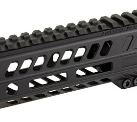 Aggressive design, ultra light 5.5″ free float hand guard. Their unique design features a very slim profile (1.375″ ID) that still allows for the installation of a sound suppressor of 1.40″ in diameter and smaller to tuck inside of the handguard when used with an exact length 6″ barrel. Works with 223/5.56 and 9mm calibers. Handguard does not require timing and installs with a standard wrench.