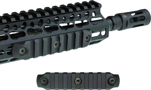 NOTE: NYLON/POLYMER PICATINNY RAIL SECTIONS ARE FOR NON-LOAD BEARING ACCESSORIES ONLY. ALUMINUM PICATINNY RAIL SECTIONS RECOMMENDED FOR LOAD BEARING. DO NOT EXCEED 20 IN/LBS WHEN SECURING KEYMOD FASTENERS ON POLYMER ACCESSORIES. ALUMINUM PICATINNY RAIL SECTIONS MAY BE TORQUED TO 30 IN/LBS