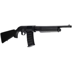 The Pro Series M from Black Aces Tactical is a pump-action shotgun with a billet aluminum receiver and trigger body. This shotgun accepts Saiga 12 magazines and drums, along with Black Aces magazines. Comes with full and improved chokes in the Benelli Mobil style. Includes one 5 round magazine.