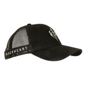 Fully adjustable mesh back hat with BlackHeart logo.