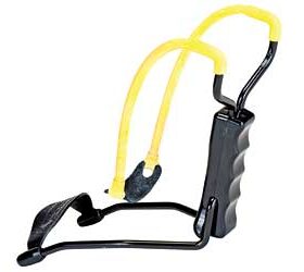 The Daisy Model B52 Slingshot sends your ammo at high speeds! The flexible wrist support is the key to providing steady and stable support for accurate shots. This wrist support folds away for compact storage. The B52 also features a molded sure-grip handle and a solid steel frame with extra-wide fork. Surgical latex rubber tubing and a rugged release pouch round out this powerful slingshot.