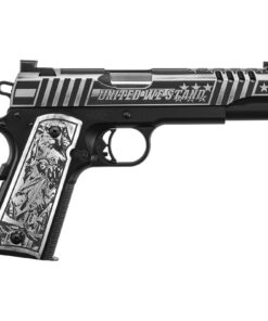 This United We Stand Special Edition 1911-A1 features a stainless steel frame and slide, checkered front strap, and 5″ barrel. It also has an aluminum engraved grips with custom engraved “United We Stand” and Matthew 12:25 Bible verse. The pistol is finished in Black Armor Cerakote with stainless accents. It comes with one 7-rd stainless steel magazine.