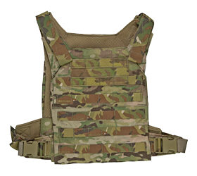 The GG Minimalist Plate Carrier is designed based on the mentality of lighter is better, with minimum frills, but a ton of function. Designed to carry 10×12 hard plates or large ESAPI plate. There are six rows of MOLLE/PALS style webbing with built in matching loop material on the top three rows, for the option of attaching patches or ID panels. The front of the carrier also features a discrete stash pocket that makes perfect storage for a variety of small items that might be needed in a hurry, such as maps, medevac cards or even a knife. Made for one size to fit most body types, the shoulder straps are adjustable and integrated elastic side straps keep a snug fit while still allowing for unexpected dynamic motion. Constructed from Mil-Spec materials to stand up to hard use, the inside faces of the carrier are lined with Air Mesh for comfort and breathability. The plate pockets are lined with 70D pack cloth for abrasion resistance.