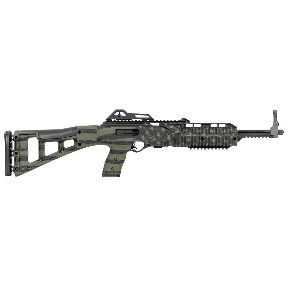 The Hi-Point carbine's have been some of the most popular pistol caliber carbines available on the market. Now they have upped the ante by producing a model that pays tribute to the beloved flag of the United States of America. Since the Hi-Point carbine is made and assembled right here in the USA it would only be right to pay homage to the greatest country in the world which allows the freedom to produce the greatest carbine of all time. This particular model features full adjustable sights picatinny rails and an all weather molded polymer stock. Take note that all Hi-Point 9mm carbines are rated for use with 9mm +P ammunition so you never need to worry about ammunition supplies. The Hi-Point Carbine makes an excellent home defense rifle survival gun or plinker.