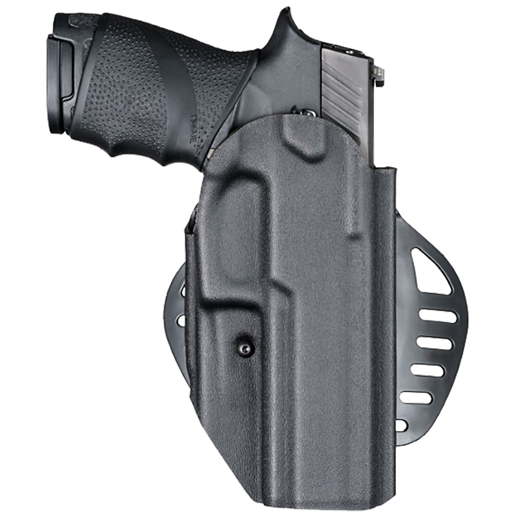 The Hogue ARS Stage 1 Carry Holster features an automatic retention lock system. The retention lock is secure and concealed behind the holster for discreet carrying. The system is unlocked with your thumb and is accessible with a natural grip, allowing fast draws. The contoured profile allows for a close fit to the body for reduced printing. This adjustable holster allows multiple carry positions including straight draw, FBI angle, and cross draw. Includes a paddle and adjustable belt plate.