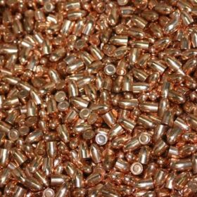 When performance counts Hornady FMJ Handgun Bullets are a preferred choice for target shooting plinking and shooting. The bullets are sold in boxes of 100 500 1000 and 6000 each competitively priced. One of the primary benefits of these bullets is the boat tail design that offers a flatter trajectory as well as better long-range performance because the ballistic coefficient is raised.