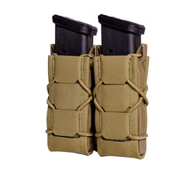 The Generation 2 Double Pistol TACO is sleeker, lighter, and more versatile than the original. Like the Original Double Pistol TACO, the Gen 2 Double Pistol TACO holds 2 pistol magazines, or similarly sized items such as flashlights or multitools. Contoured molded sides allow easy insertion of magazines. Integrated shock cord provides adjustable retention. Constructed from laser-cut nylon laminate wrapped over a woven thermoplastic core, Gen 2 TACOs weigh almost 20% less than the Originals. 1/2 inch interval MOLLE on the back of the TACO allows for both MOLLE and belt mounting options. With the addition of an HSG OTR Cover accessory, any Gen 2 TACO can be set up covered or open-top.