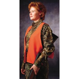 Blaze orange vest has non-restricting elastic side straps and front closure. One size fits most. Also available is the Magnum Safety Vest for larger sizes. Size 4X.