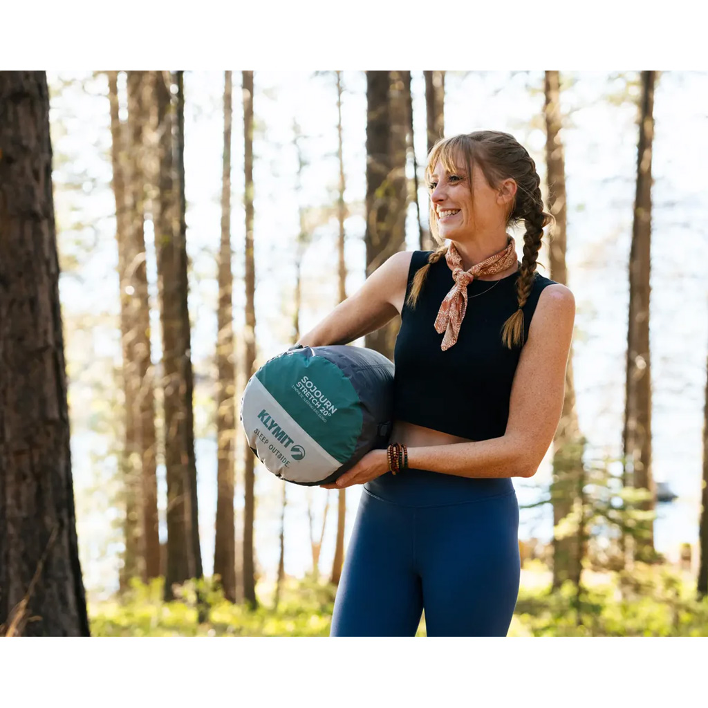 The Klymit Sojourn Stretch 20 Sleeping Bag is a versatile and comfortable choice for three-season camping. Featuring innovative stretch baffles, this bag allows for unrestricted movement while maintaining warmth by keeping the insulation close to your body. The mummy-style hood with draft collar and adjustable drawcord enhances heat retention, while the anti-snag YKK two-way zipper allows for easy ventilation control. With adjustable Length Locks to customize the fit and a synthetic fill for reliable insulation in varied conditions, the Sojourn Stretch 20 packs down small and is ready for any adventure.