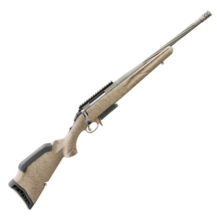 Ruger American Rifle Gen II Ranch 350 Legend 16.40″ Spiral Cobalt Barrel; FDE Splatter Gen II American Stock; 5rd Capacity; One Piece Picatinny Scope Base; 1 AR Style Magazine