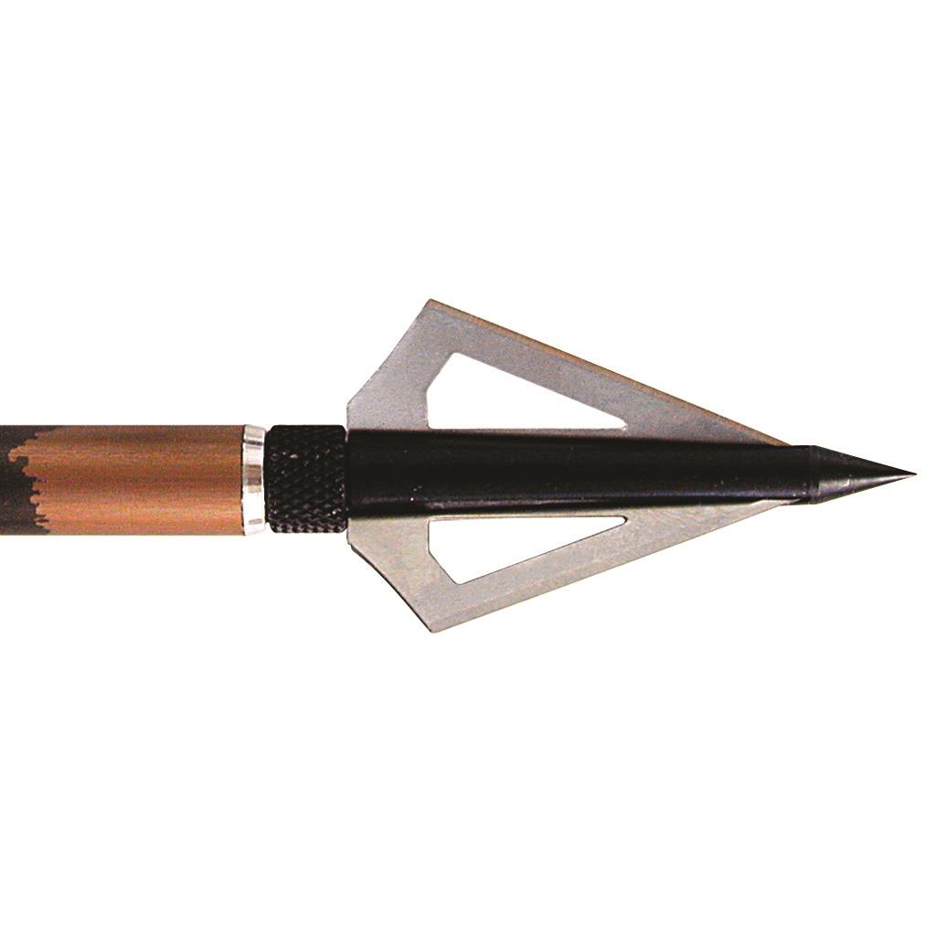 Fixed three blade 1 3/16″ cutting diameter broadhead, .027″ thick stainless steel razor sharp blades, hardened round nose tip, blade locking collar, 125 grain, 3 per pack.